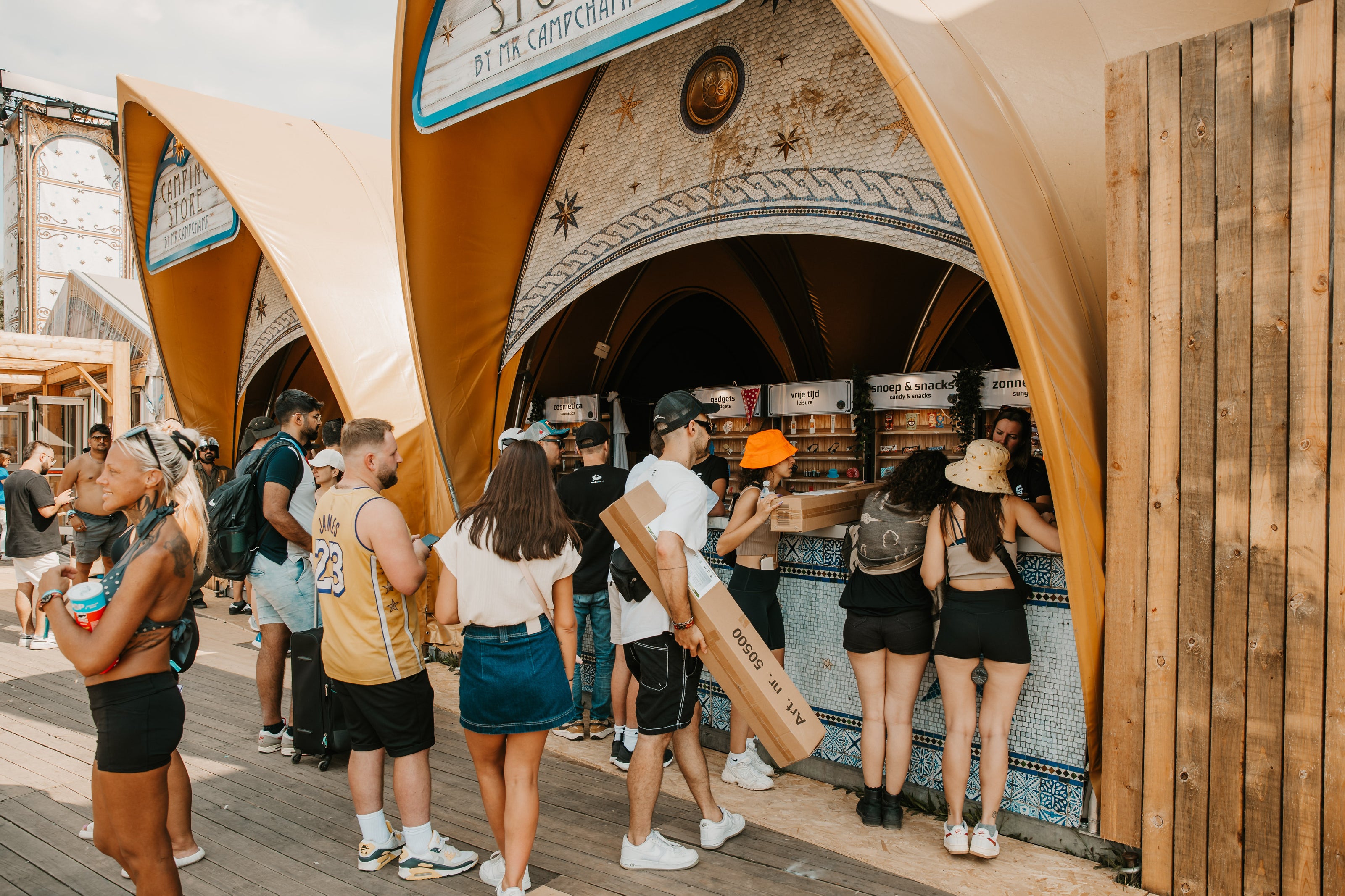 Geen gesjouw: Haal je vooraf gereserveerde producten gemakkelijk op bij de campingstore op het festival.